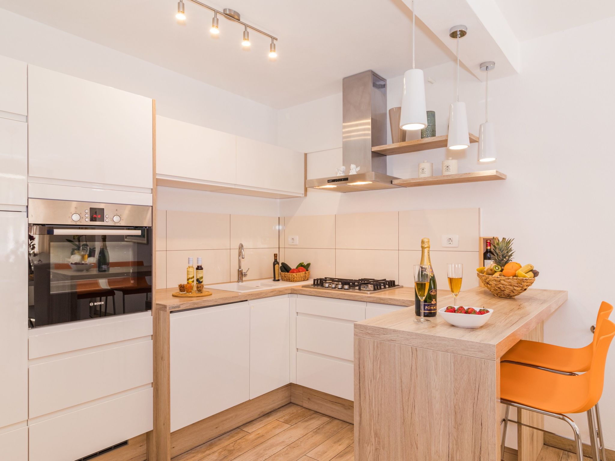 Maximaal 3 huisdieren/honden toegestaan. This holiday stone house is located in a small medieval village called Galižana, just five kilometres from Pula and the sea.The air-conditioned holiday home on the ground floor has 80m² of living space spread over two floors. The large living room is furnished with a cosy corner sofa and a flat-screen TV with satellite channels. The fold-out sofa here can also be used as a bed (1.60 x 2m). The open-plan kitchen is separated by a breakfast bar and has a fridge with freezer compartment, gas hob, oven and all important electrical appliances such as microwave, kettle, toaster and coffee machine. There is also a guest WC. Upstairs you will find two bedrooms, one of which is furnished with a double bed (1.80m wide) and the other with two single beds (each 90cm wide). The owner will be happy to provide you with a baby cot and a high chair free of charge. The large bathroom is equipped with towel heating, a large washbasin and a walk-in shower, WC, bidet and hairdryer. A washing machine is also available. WLAN is available free of charge throughout the house.From the bedroom on the upper floor, you step out onto the balcony, which overlooks the garden and from which you can enjoy the view of the island of Brijuni and the sea. From the living room you can access the terrace, which is furnished with a table and chairs and a barbecue for al fresco dining. Adjacent to this is the large garden, where you will find the approx. 3.5 x 7 metre pool with a depth of approx. 1.3 metres. On the enclosed plot in front of the house there is another terrace, as well as the two parking spaces, which are for your private use. 1-3 pets are allowed on request.In the village of Galižana you will find various shopping facilities as well as bars and a restaurant. The large town of Pula (5 km) is just a few minutes' drive away and offers numerous shopping and sightseeing opportunities.