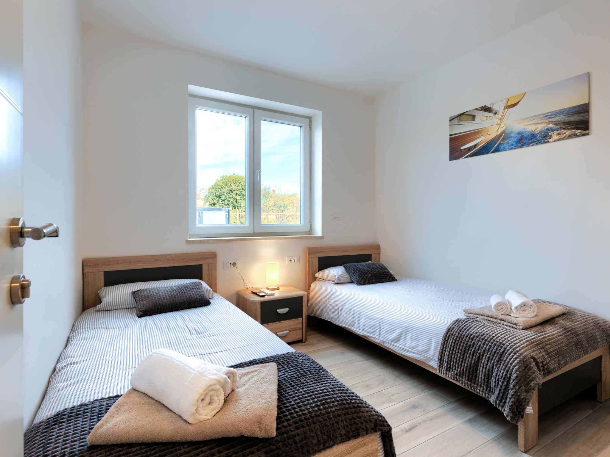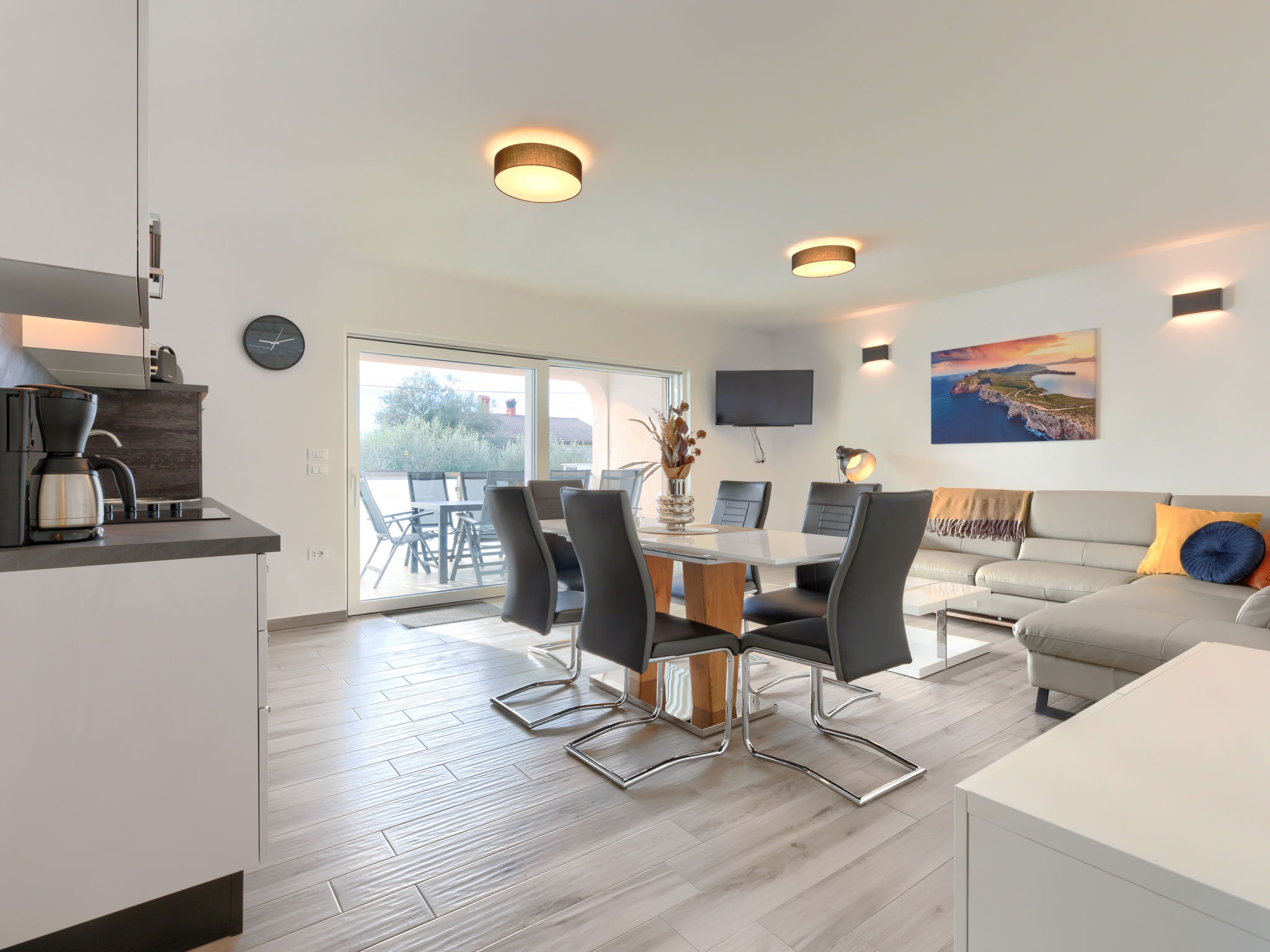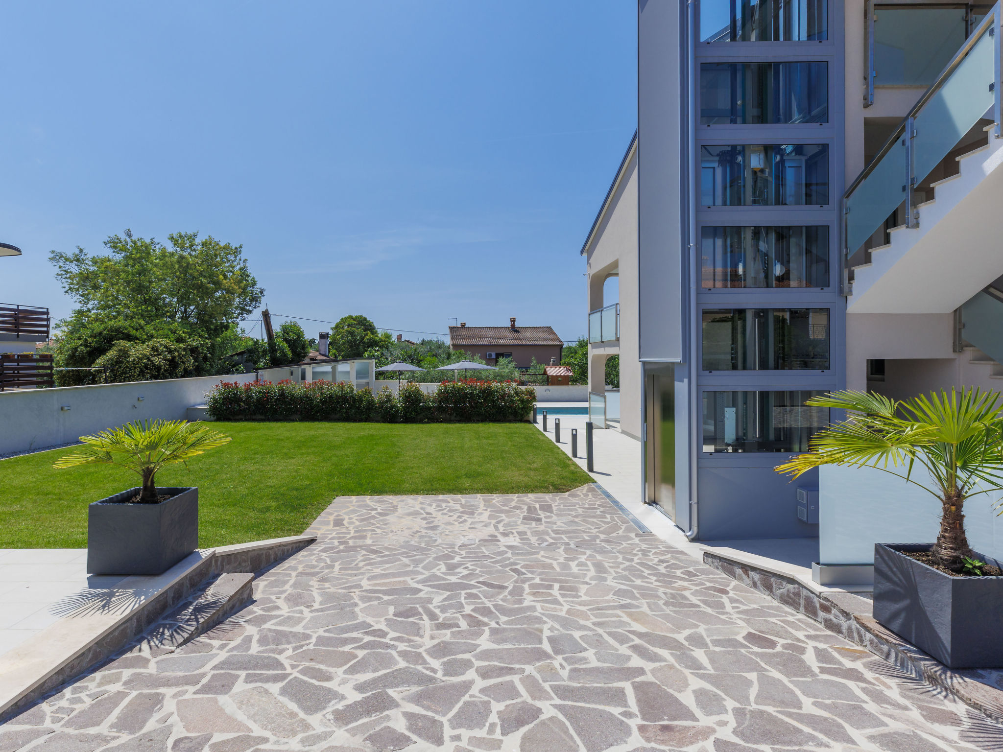Murine 3 km van Umag: Appartementencomplex "Villa Galici", bouwjaar 2022. In het gehucht Galici, 1 km van het centrum van Murine, zonnige ligging, 2.5 km van zee, 2.5 km van het strand. Voor medegebruik: terrein 1.000 m2 met gazon, openluchtzwembad hoekig verwarmd (10 x 5 m, 150 cm diepte, seizoensgebonden beschikbaarheid: 01.Jan. - 31.Dec.) met trap en oprolbaar afdekscherm. Buitendouche. In het huis: internetaansluiting, tafelvoetbal. Parkeerplaats bij het huis op het terrein. Winkel 1.5 km, restaurant 800 m, bushalte 4.1 km, kiezelstrand 2.5 km, rotsstrand 2.5 km. Wandelroutes 100 m vanaf het huis, fietspad 150 m. De eigenaar accepteert geen jeugdgroepen.