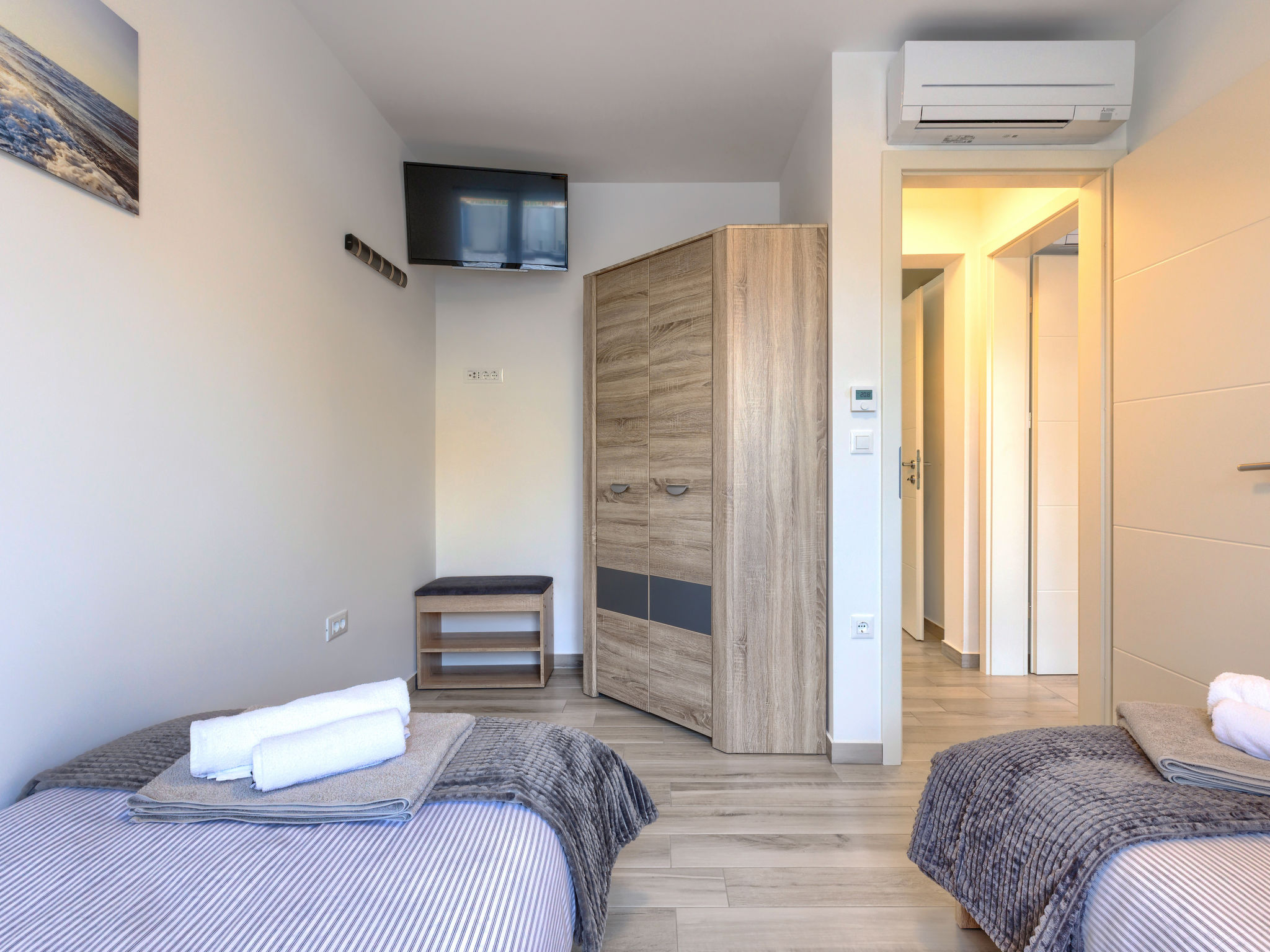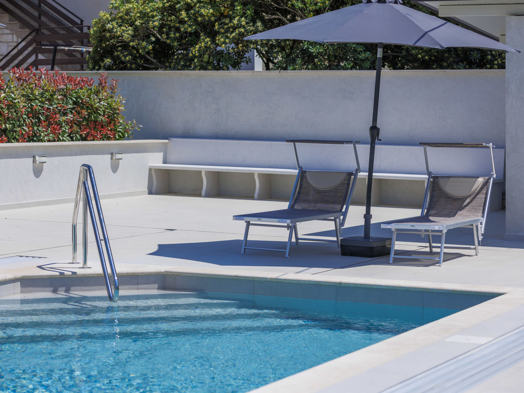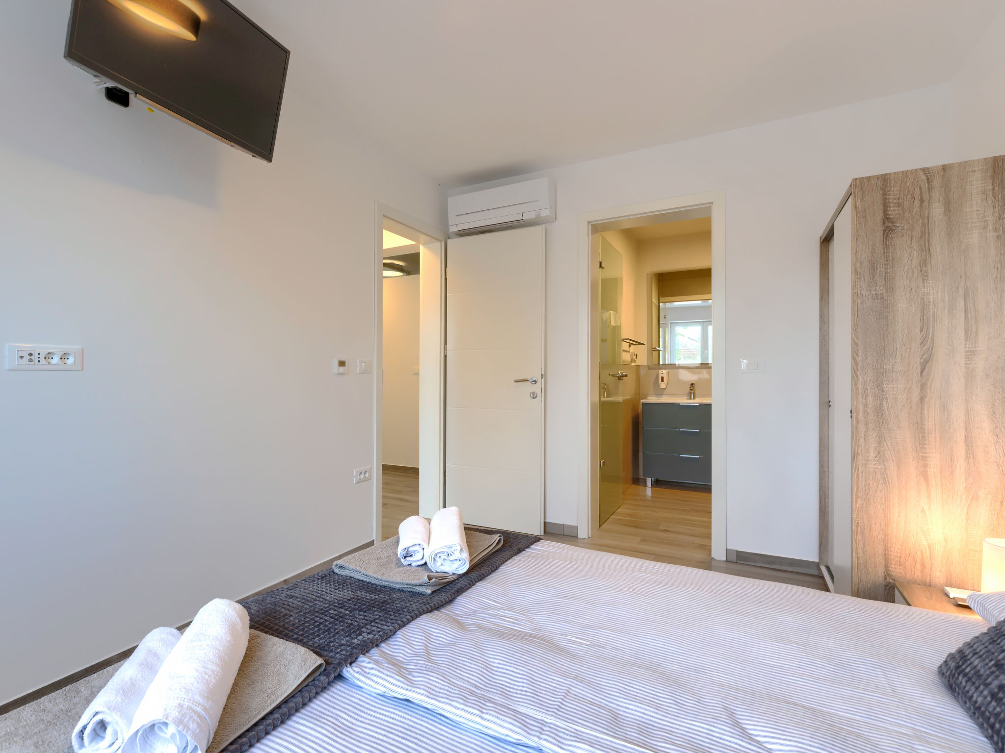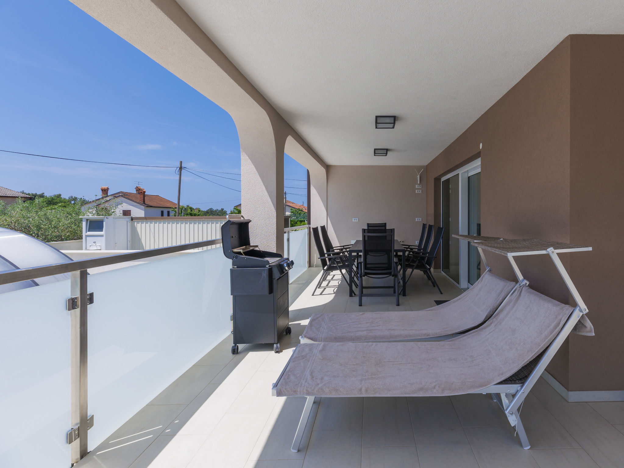 Murine 3 km van Umag: Appartementencomplex "Villa Galici", bouwjaar 2022. In het gehucht Galici, 1 km van het centrum van Murine, zonnige ligging, 2.5 km van zee, 2.5 km van het strand. Voor medegebruik: terrein 1.000 m2 met gazon, openluchtzwembad hoekig verwarmd (10 x 5 m, 150 cm diepte, seizoensgebonden beschikbaarheid: 01.Jan. - 31.Dec.) met trap en oprolbaar afdekscherm. Buitendouche. In het huis: internetaansluiting, tafelvoetbal. Parkeerplaats bij het huis op het terrein. Winkel 1.5 km, restaurant 800 m, bushalte 4.1 km, kiezelstrand 2.5 km, rotsstrand 2.5 km. Wandelroutes 100 m vanaf het huis, fietspad 150 m. De eigenaar accepteert geen jeugdgroepen.