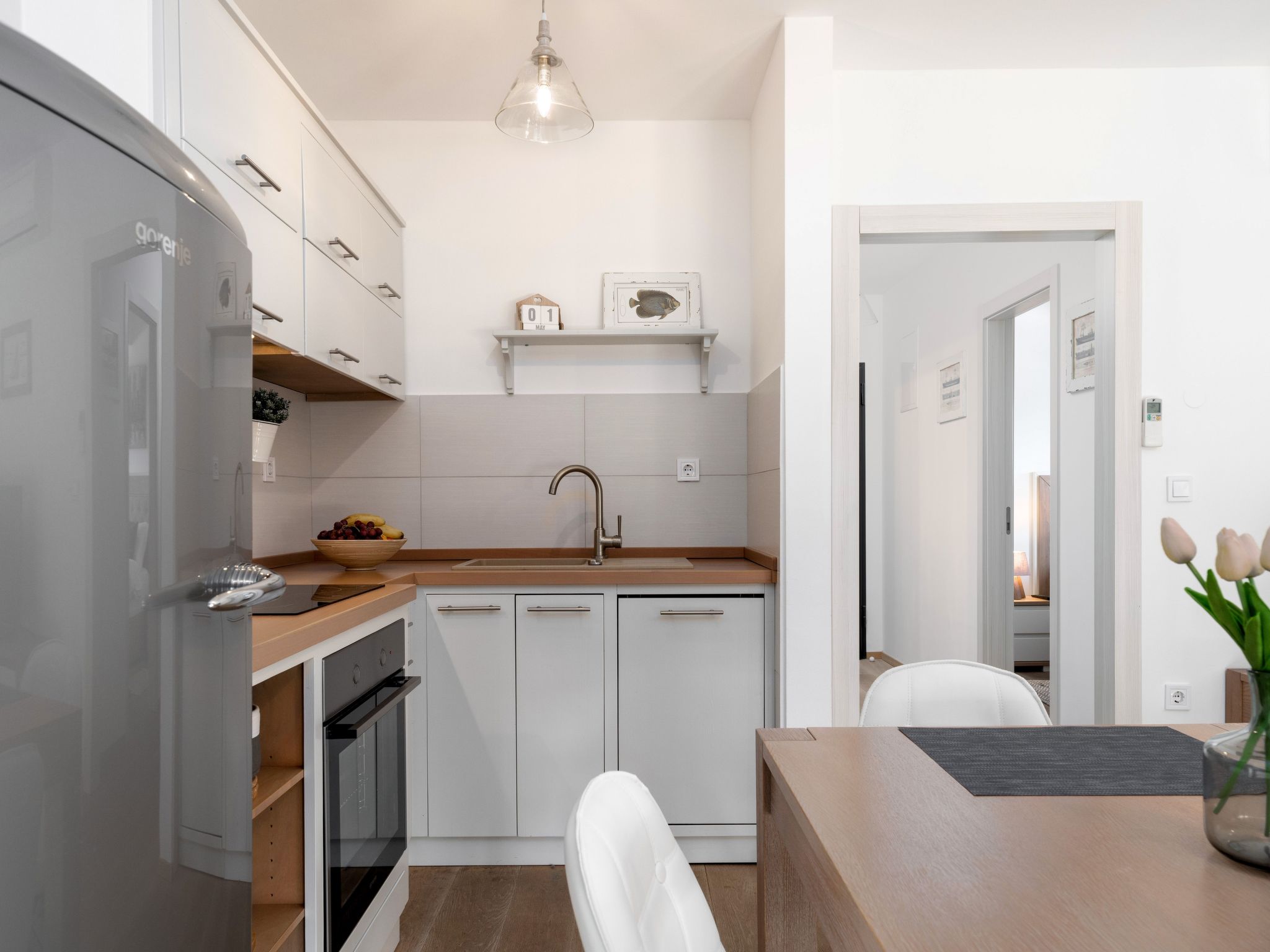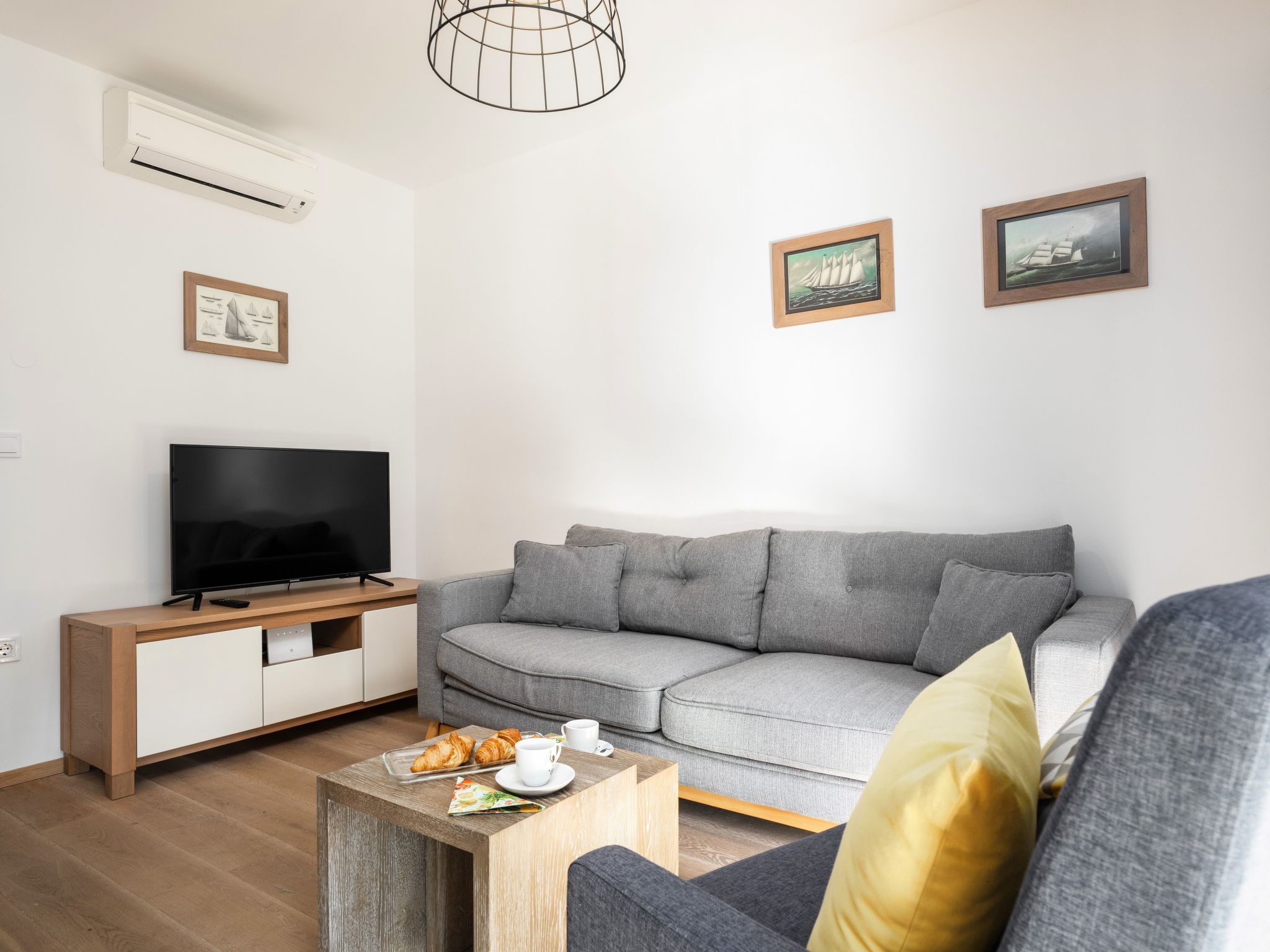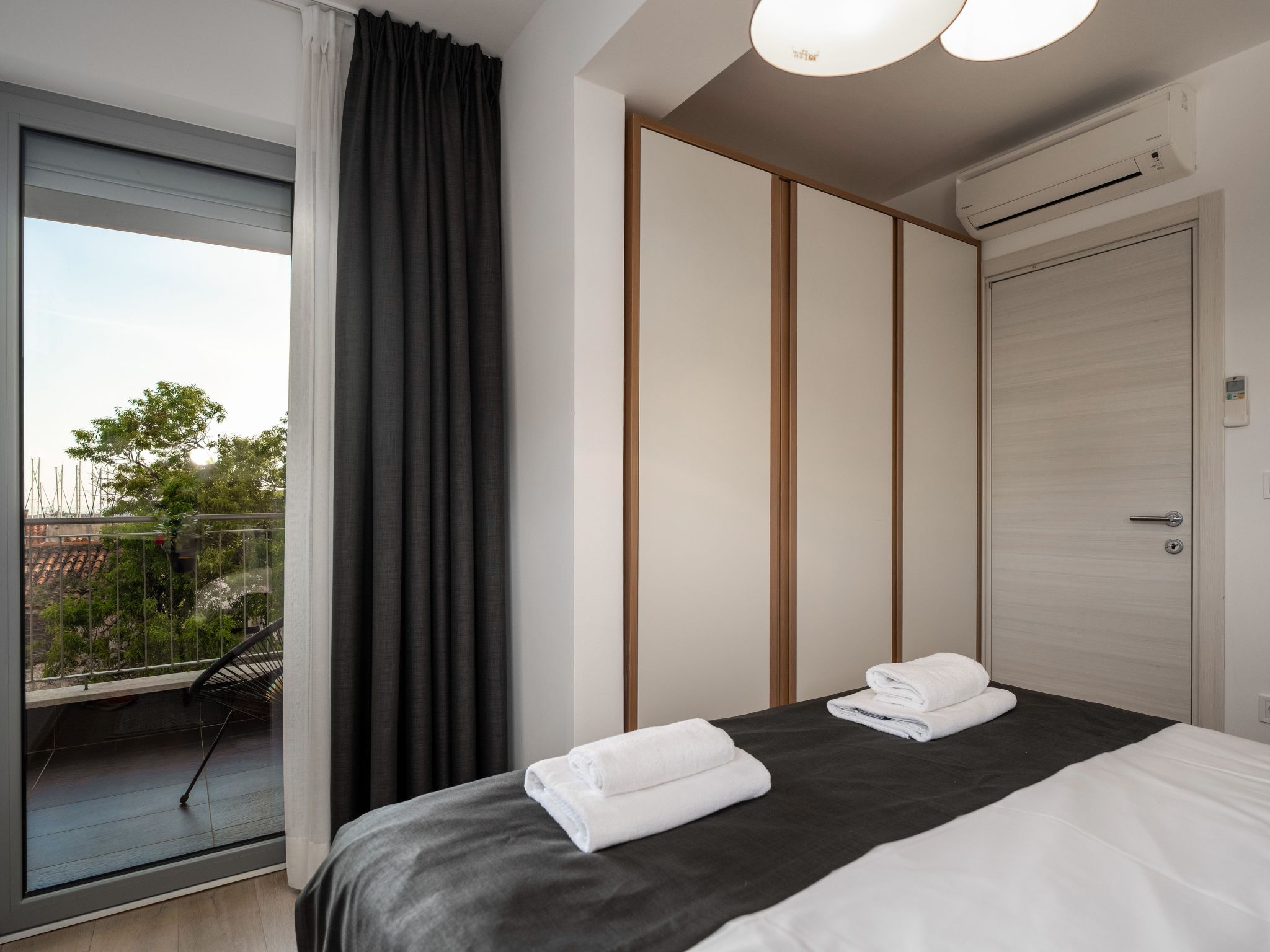 Discover the heart of Istria with a stay in the Kata Premium holiday flat, located in the picturesque town of Vrsar between Porec and Rovinj. This modern holiday accommodation is ideal for couples looking for a relaxing yet eventful getaway. With its unique location right in the marina, it offers tranquillity and unrivalled sea views, while the historic old town and lively town promenade are just a short walk away.The flat itself is located on the first floor of a new building and has 47 square metres of living space, which is perfectly divided. It offers a cosy living area with a fully equipped kitchen, a dining table and a pull-out couch, which is ideal for a small child. A highlight is the balcony, which invites you to relax with its enchanting sea view and comfortable garden furniture. There is also a bedroom with a double bed and a modern bathroom with shower/WC.The Kata Premium holiday flat is characterised by its inviting outdoor area. With its cosy ambience, the balcony invites you to enjoy the quiet morning hours or the picturesque sunset over the sea. For those travelling by car, a private parking space is included, which is a convenience not to be underestimated in the lively coastal town of Vrsar. In addition, entry to the Vrsar marina is included in the price, which is an additional incentive for boat lovers.The surrounding area offers a wide range of leisure activities. Within a few metres you can reach various cafés, shops and restaurants offering local delicacies and international cuisine. The beach is just 300 metres away and promises relaxing days on the crystal-clear waters of the Adriatic. For those interested in culture, a stroll through the historic old town is a must, while the nearby town promenade invites you to experience the lively hustle and bustle of Vrsar.The Kata Premium holiday flat is the perfect choice for an unforgettable holiday in Vrsar. With its modern comfort, fantastic location and direct access to both relaxation and entertainment, this flat offers the best of both worlds for a relaxing holiday in Istria. Book now and experience the holiday you've always dreamed of.