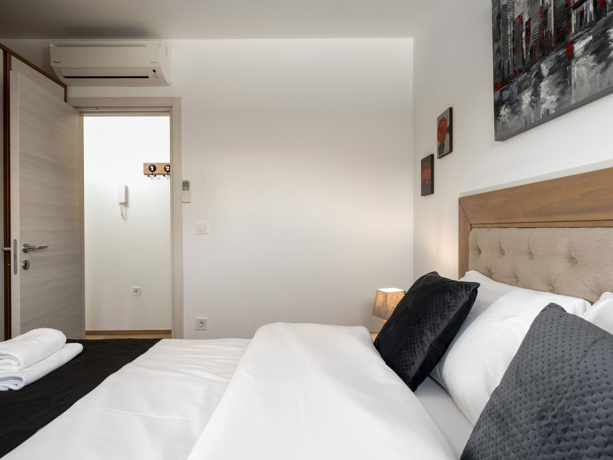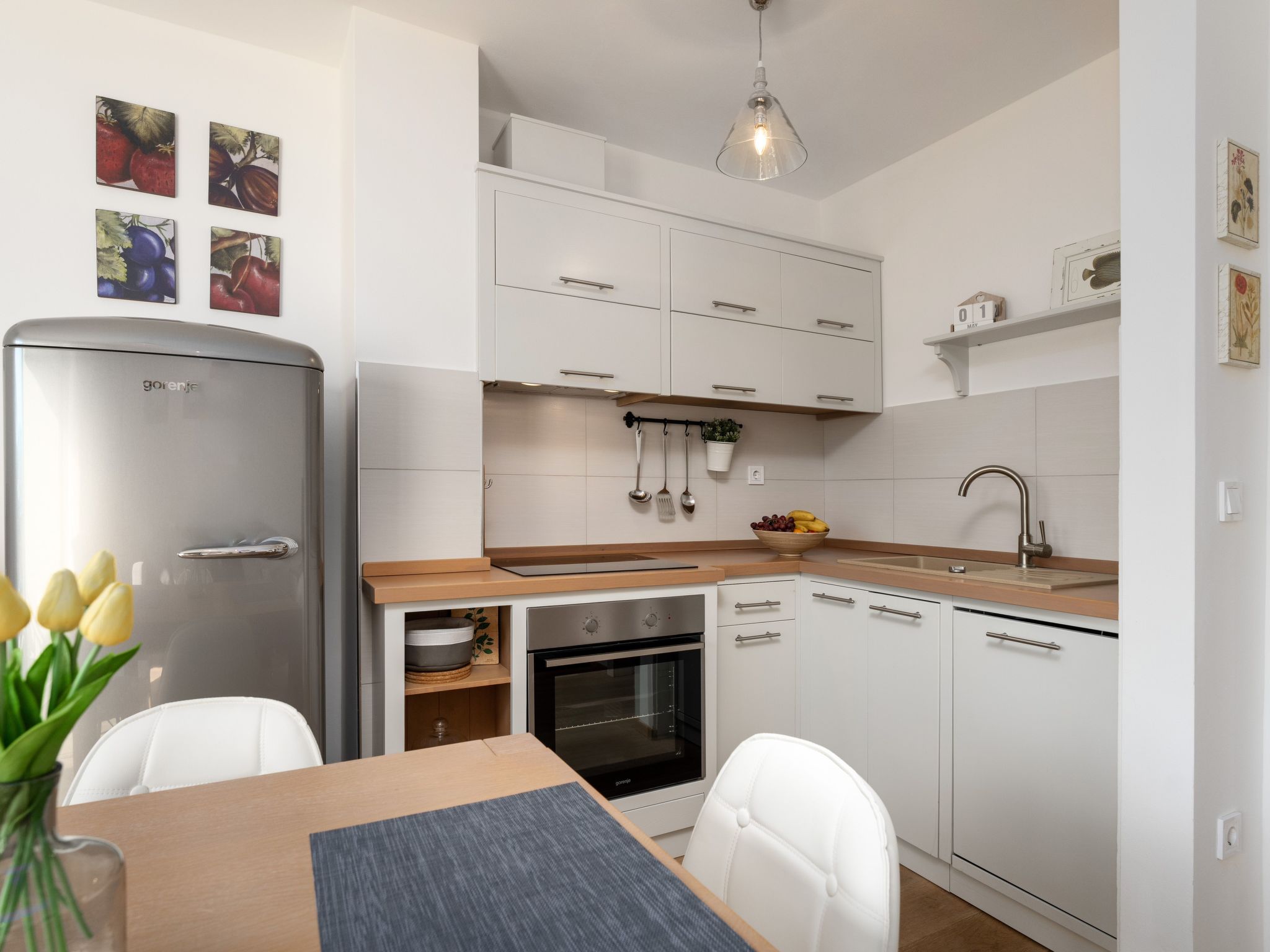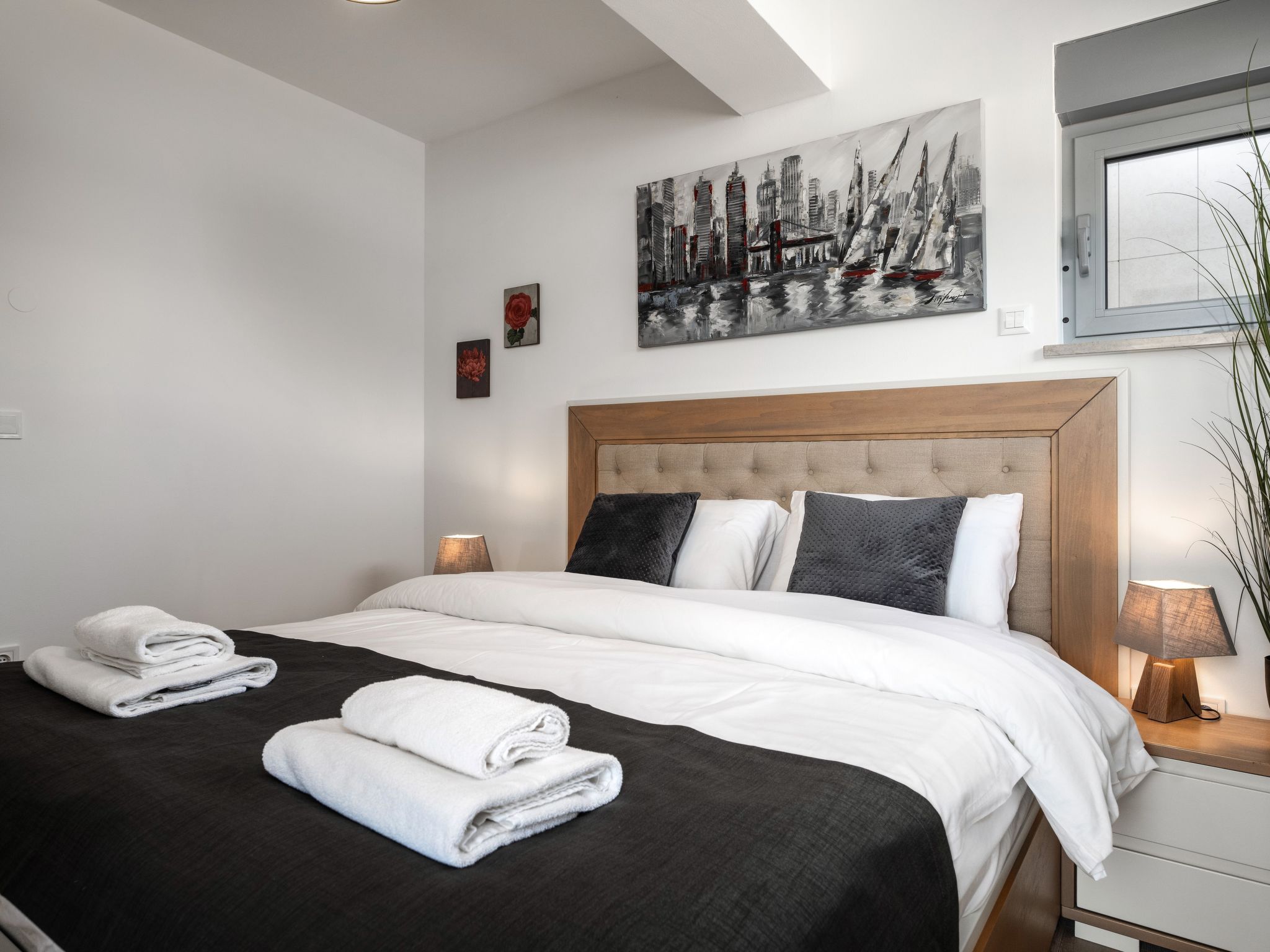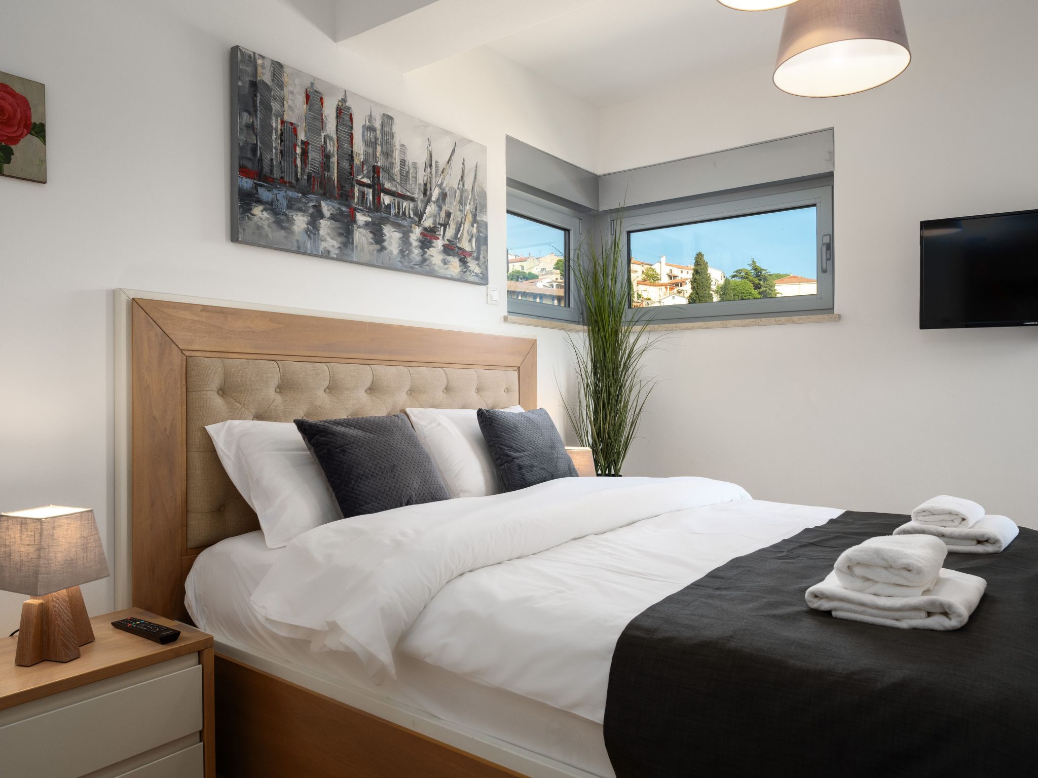 Discover the heart of Istria with a stay in the Kata Premium holiday flat, located in the picturesque town of Vrsar between Porec and Rovinj. This modern holiday accommodation is ideal for couples looking for a relaxing yet eventful getaway. With its unique location right in the marina, it offers tranquillity and unrivalled sea views, while the historic old town and lively town promenade are just a short walk away.The flat itself is located on the first floor of a new building and has 47 square metres of living space, which is perfectly divided. It offers a cosy living area with a fully equipped kitchen, a dining table and a pull-out couch, which is ideal for a small child. A highlight is the balcony, which invites you to relax with its enchanting sea view and comfortable garden furniture. There is also a bedroom with a double bed and a modern bathroom with shower/WC.The Kata Premium holiday flat is characterised by its inviting outdoor area. With its cosy ambience, the balcony invites you to enjoy the quiet morning hours or the picturesque sunset over the sea. For those travelling by car, a private parking space is included, which is a convenience not to be underestimated in the lively coastal town of Vrsar. In addition, entry to the Vrsar marina is included in the price, which is an additional incentive for boat lovers.The surrounding area offers a wide range of leisure activities. Within a few metres you can reach various cafés, shops and restaurants offering local delicacies and international cuisine. The beach is just 300 metres away and promises relaxing days on the crystal-clear waters of the Adriatic. For those interested in culture, a stroll through the historic old town is a must, while the nearby town promenade invites you to experience the lively hustle and bustle of Vrsar.The Kata Premium holiday flat is the perfect choice for an unforgettable holiday in Vrsar. With its modern comfort, fantastic location and direct access to both relaxation and entertainment, this flat offers the best of both worlds for a relaxing holiday in Istria. Book now and experience the holiday you've always dreamed of.