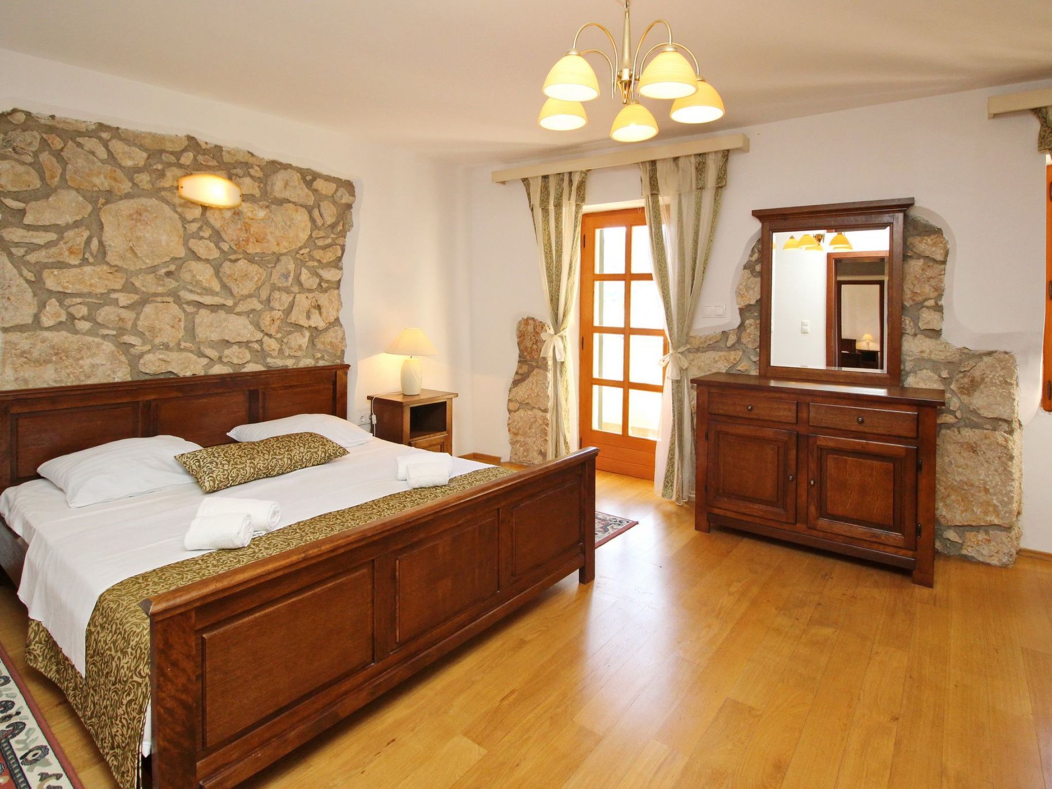 Renovated stone house, newly furnished, air-conditioned, in silence, with terrace, with balcony, with garden, with pool, WiFi, barbecue in the garden. From the centre of Baska about 4 km away but in Baska free parking near the beach Other options: Air conditioning, Internet included in price, pleasant surroundings, flat with pool, free Wi-Fi Number of persons: 8-9 Places: 200 m2 (On two floors) Check in: 14:00 Check out: 10:00 Equipment of holiday house for single use: Bedroom no.1 : double room , double bed , with balcony , parquet , Bedroom no.2 : double room , double bed , parquet Bedroom no.3 : double room , double bed , parquet Bedroom no.4 : double room , double bed , parquet Bedroom no.5 Living area : separate living room; separate dining room; dining table and seating for all persons; with terrace; tiled Kitchen :kitchenette, crockery, cooking pots, cutlery etc. available, dish towels available, electric cooker, number of hotplates: 4, oven, fridge with freezer compartment, coffee machine, microwave, toaster, dishwasher, kettle Bathroom No.1 Bathroom no. 1 : bath with WC, with shower Bathroom no. 2 : bath with WC, with shower Bathroom no. 3 : bath with WC, with bathtub Special features of the accommodation unit : semi-detached house, air conditioning, air conditioning included in price: Anzahl 1, Sat-TV, bed linen provided in weekly change, towels available (1 large, 1 small/person and week) Balcony : private balcony, table and chairs for the balcony are available, surface of the balcony: 8qm Terrace : private terrace, table and chairs for the terrace are available, surface of the terrace: 20qm