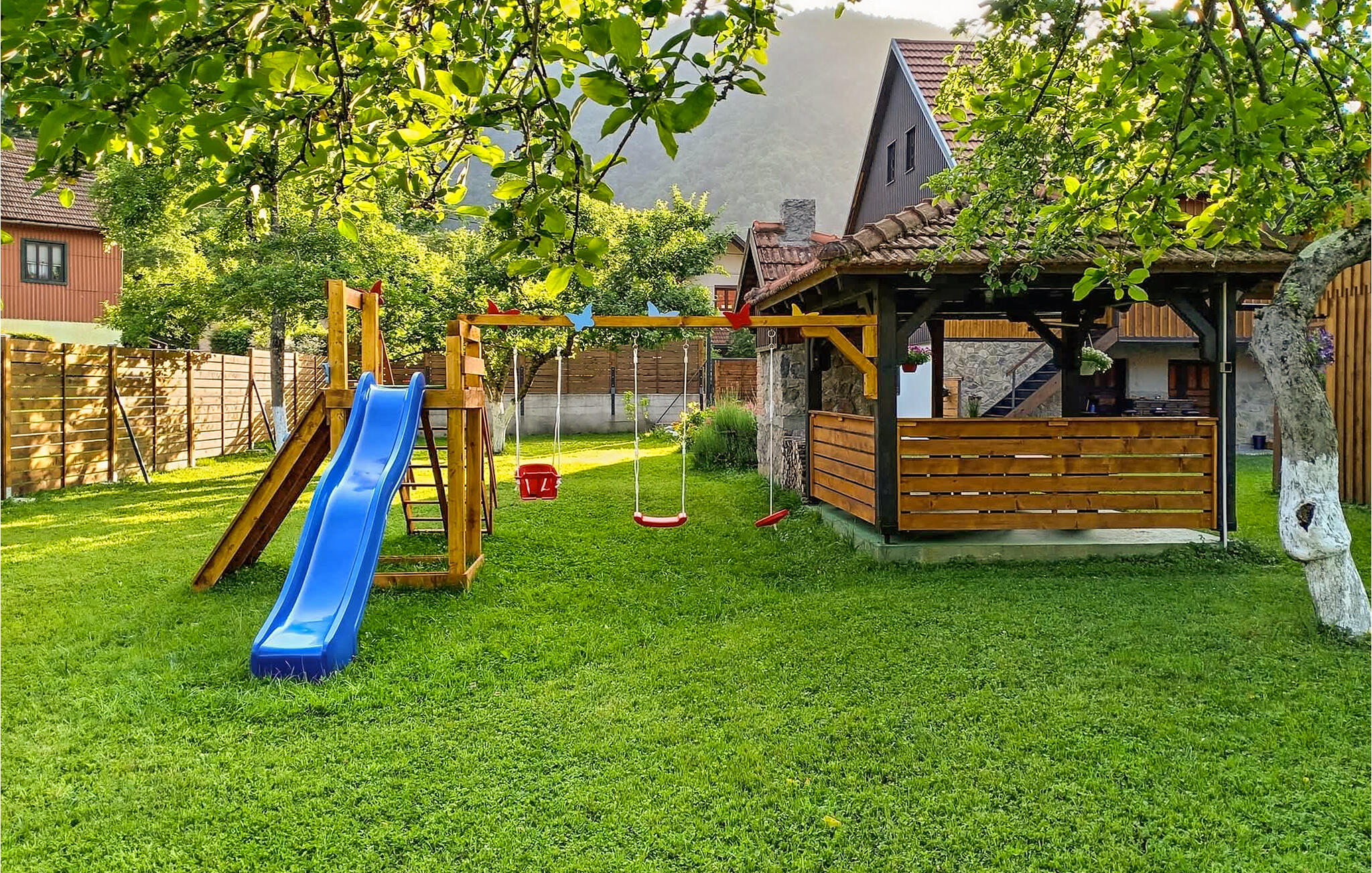 De goed onderhouden, ruime tuin trekt jonge gasten aan met heerlijke speelmogelijkheden in de frisse lucht. Ontspan met je vakantielectuur op de ligstoel terwijl anderen zich vermaken aan de tafelvoetbaltafel en vier jullie tijd samen op sfeervolle barbecue-avonden.