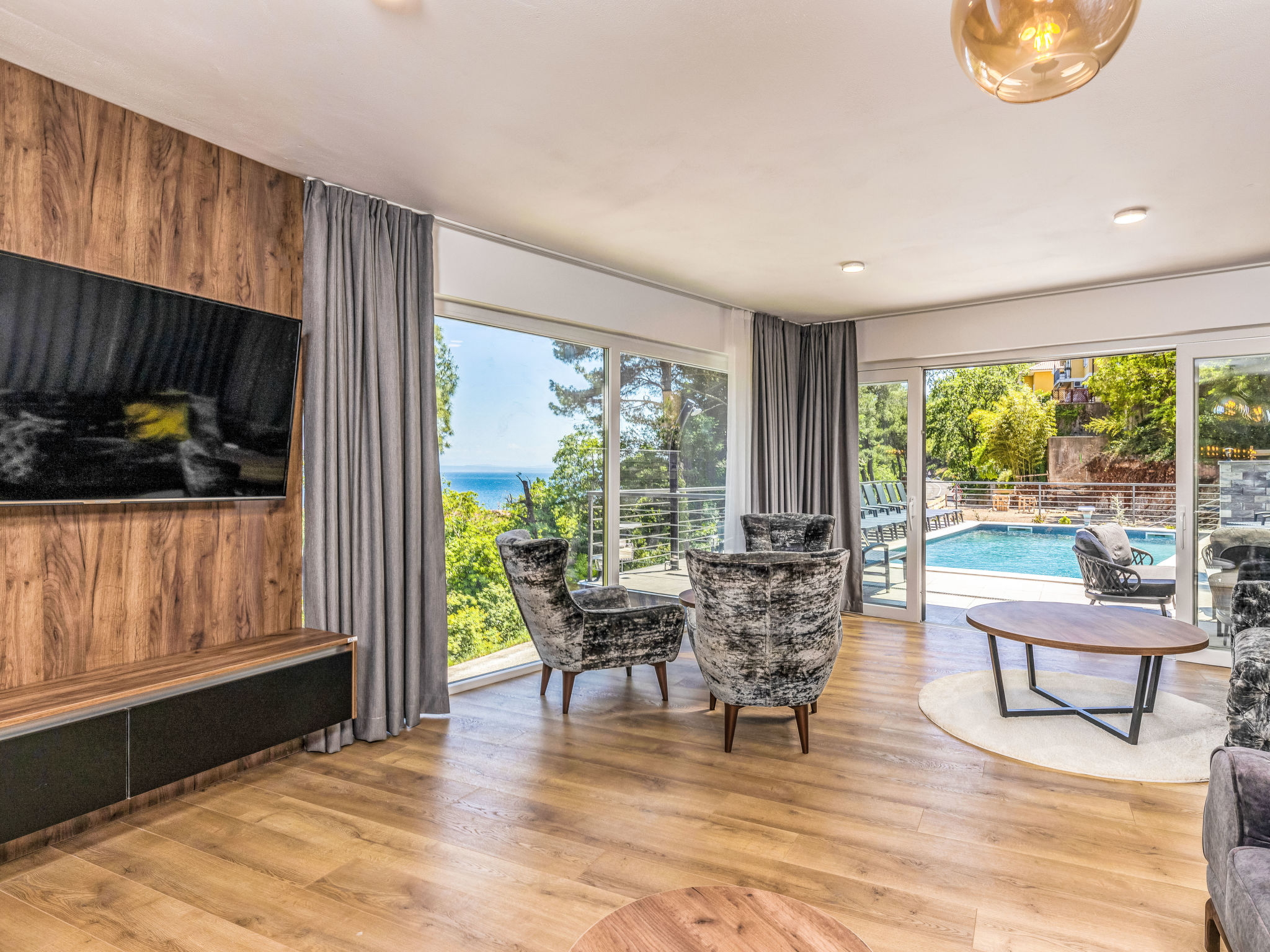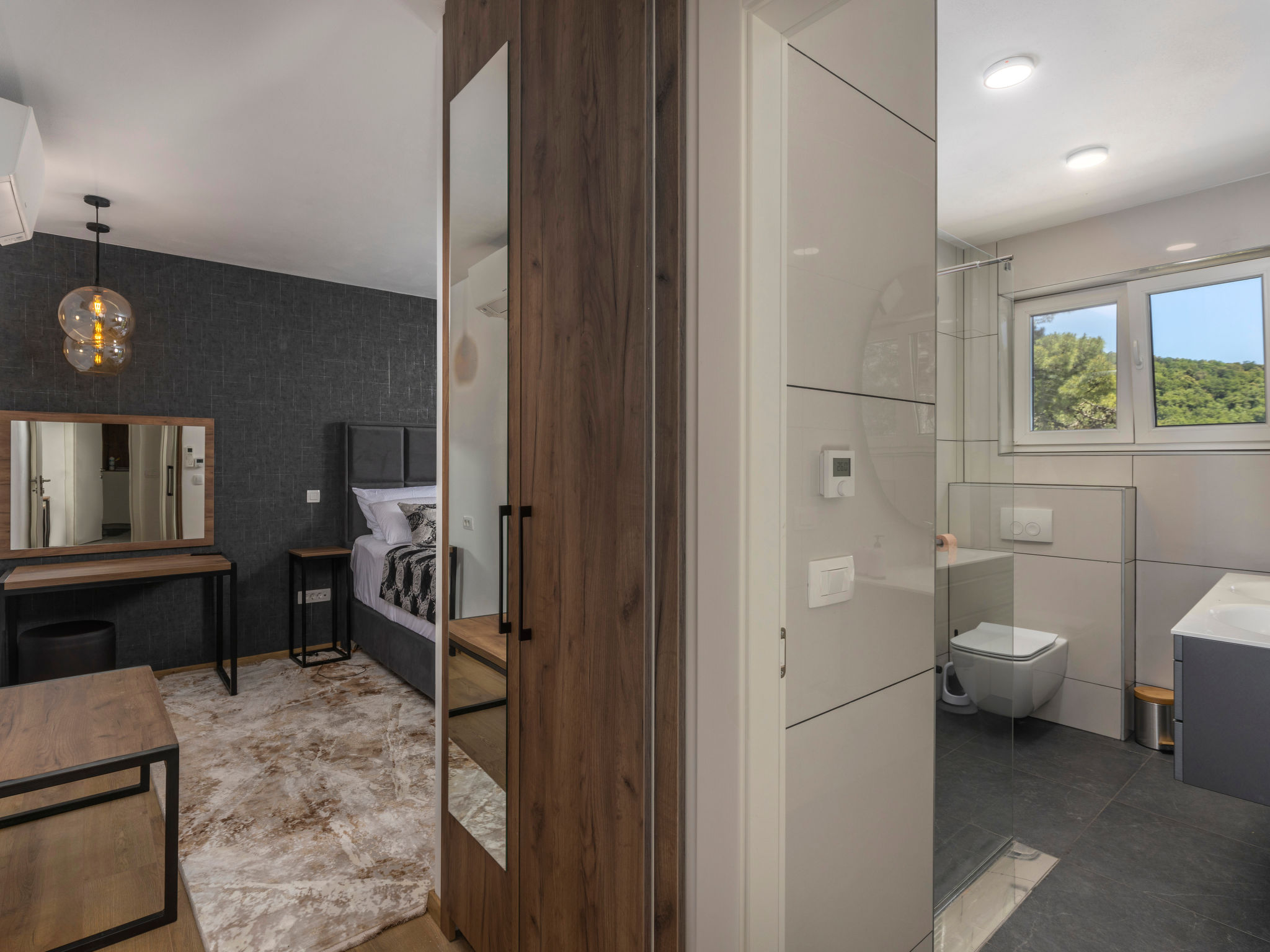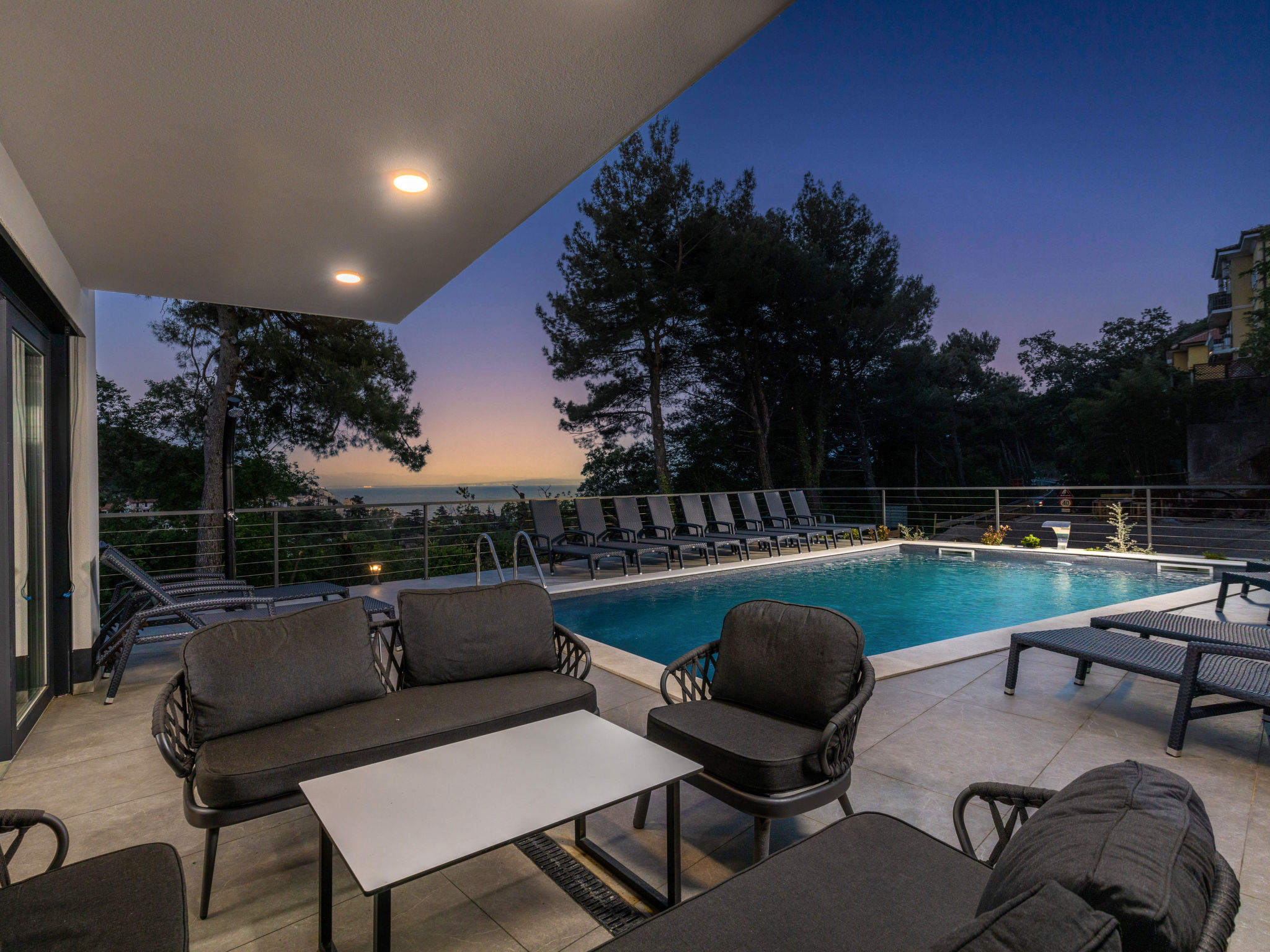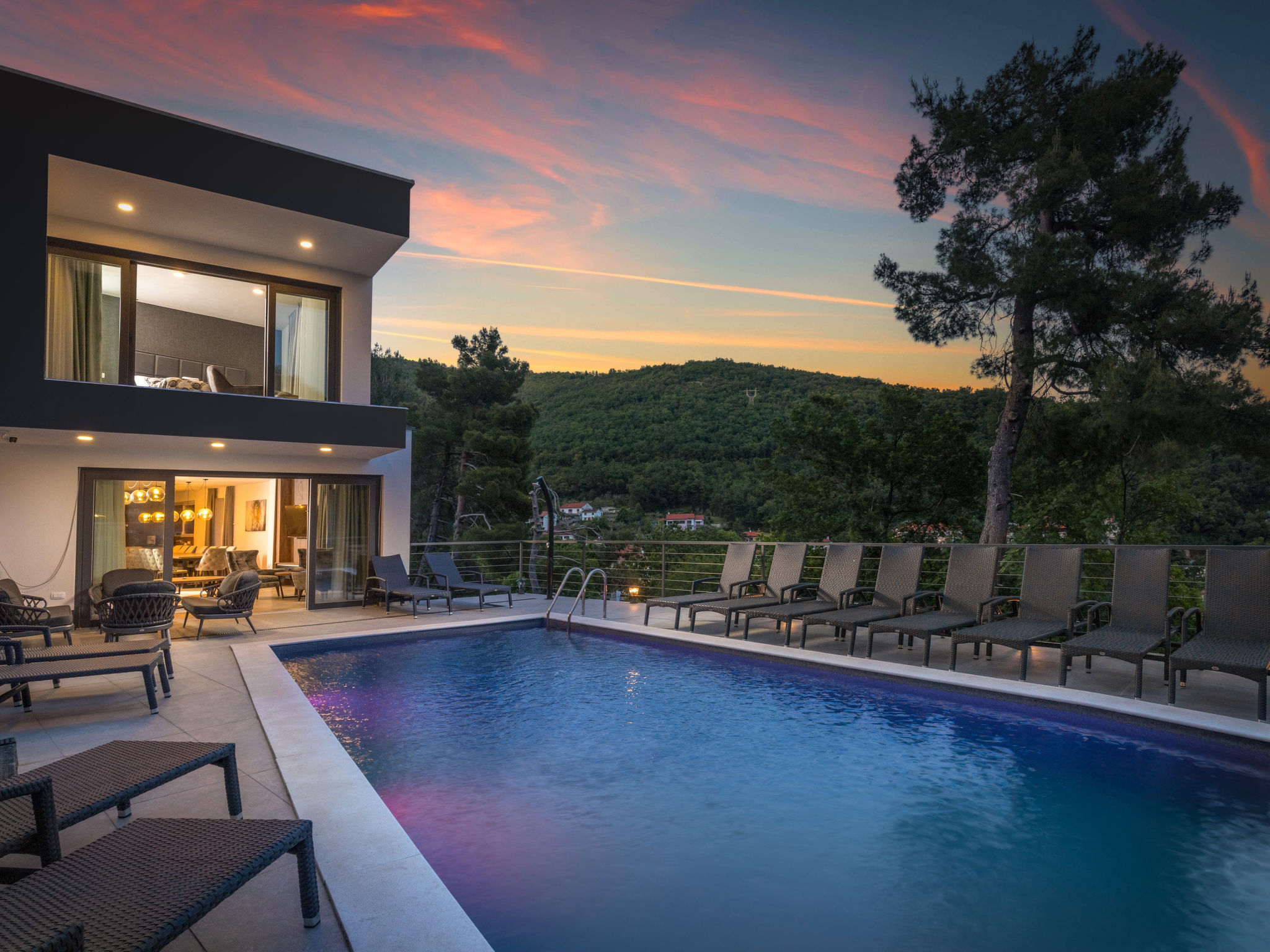 Villa "Visum Mare Tribus", van 3 verdiepingen. 500 m van het centrum van Mošcenicka Draga, zonnige ligging, 700 m van zee, van het strand. Voor alleengebruik: terrein 1.230 m2 met planten, openluchtzwembad hoekig, verwarmd (9 x 4 m, 140 cm diepte, seizoensgebonden beschikbaarheid: 15.Apr. - 30.Okt.). Buitendouche. In het huis: internetaansluiting, sauna, hot tub, centrale verwarming, wasmachine, droger. Parkeerplaats (voor 5 auto's) bij het huis op het terrein. Winkel, supermarkt 650 m, restaurant 100 m, bushalte 70 m, stenenstrand, strandbad 700 m. Zwembad met stroming.