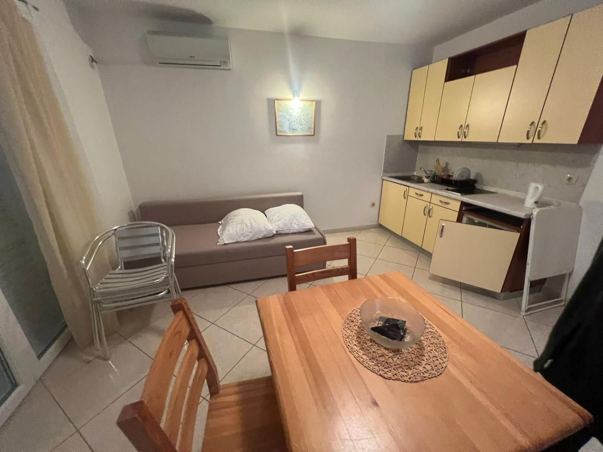 Welcome to your charming holiday flat in Novi Vinodolski, where the tranquil atmosphere of Kvarner Bay invites you to relax and enjoy the beautiful surroundings. Situated in a large family home that houses five cosy flats, this idyllic hideaway for two provides the perfect base from which to explore picturesque Novi Vinodolski while enjoying peace and privacy. Experience an unforgettable time in an ambience that combines peace and comfort close to the sea.Inside, you will find a tastefully furnished flat that offers everything you need for a relaxing stay. In addition to a comfortable bedroom that invites you to spend restful nights, the flat has an inviting living room with kitchenette, equipped with a 2-plate induction hob and kettle, as well as a practical bathroom with shower. Partial air conditioning ensures pleasant temperatures, even on warmer days. For added convenience, there is a washing machine for shared use in the building for you and the other guests.The outdoor area of the house with its large communal garden and a charming little taverna, which is open to all guests, invites you to socialise or enjoy the quiet hours outdoors. Although the accommodation does not offer a private car park, you will find plenty of free parking directly on the street in front of the house.The location of the holiday flat is ideal for discovering the beauty of Novi Vinodolski and the Kvarner Bay. With the beach, the sea and water sports facilities just 300 metres away, you have the opportunity to spend sunny days by the water. There is a grocery store just 50 metres away for your daily errands, while the nearest town centre with its charming cafés and restaurants offers a wonderful variety of culinary delights 2000 metres away.This holiday flat in Novi Vinodolski is the perfect place for couples who appreciate a cosy and peaceful environment. Enjoy the harmony and beauty of nature that this special corner of Croatia has to offer. Spoil yourself with a stay that combines peace, comfort and direct proximity to the sea - for unforgettable moments in the Kvarner Bay.