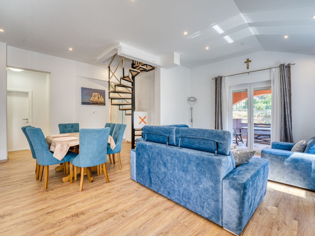 Matulji: Huis met 2 woningen "Zeba". In het gehucht Jušici, 2.4 km van het centrum van Matulji, 6 km van het centrum van Opatija, rustige, zonnige ligging, 5 km van zee, 5 km van het strand, aan een doodlopende weg. Voor medegebruik: terrein 1.600 m2 (omheind), gazon 1.100 m2, planten. In het huis: internetaansluiting, wasmachine (extra) (voor medegebruik). Parkeerplaats bij het huis op het terrein. Winkel 400 m, supermarkt 2.5 km, café 400 m, bushalte 500 m, stenenstrand 5 km, strandbad 5 km, betonnen strand 5 km.