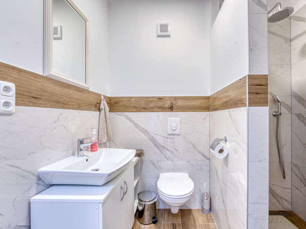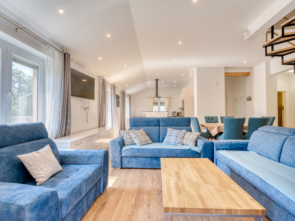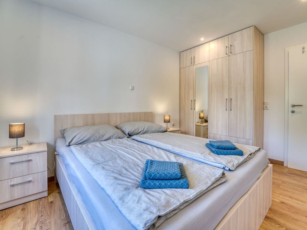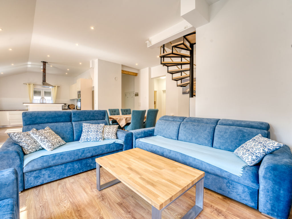 Appartement 4-kamers 115 m2 op 2 verdiepingen op de 2e verdieping. Modern ingericht: woon-/eetkamer met Kabel-TV en air-conditioning. Uitgang naar het terras. 2 kamers, elke kamer heeft 1 2-pers bed (160 cm, lengte 200 cm). Open keuken (oven, afwasmachine, 4 keramische glas kookplaten, waterkoker, magnetron, diepvriezer, elektrische koffiemachine). 2 douche/WC's. Geen verwarmingsmogelijkheid. Zolderverdieping: (wenteltrap), lage deurhoogte, 140 cm lage deurhoogte, 140 cm 1 kamer met afgeschuinde daken met hoogte van het plafond 90 - 180 cm, dakraam met 1 2-pers bed (2 x 90 cm, lengte 200 cm). Terras 16 m2, overdekt. Terrasmeubelen. Uitzicht op het landschap. Ter beschikking: haardroger. Internet (Internet (WiFi), gratis). Niet rokers woning. 2170-0802/22-24-3