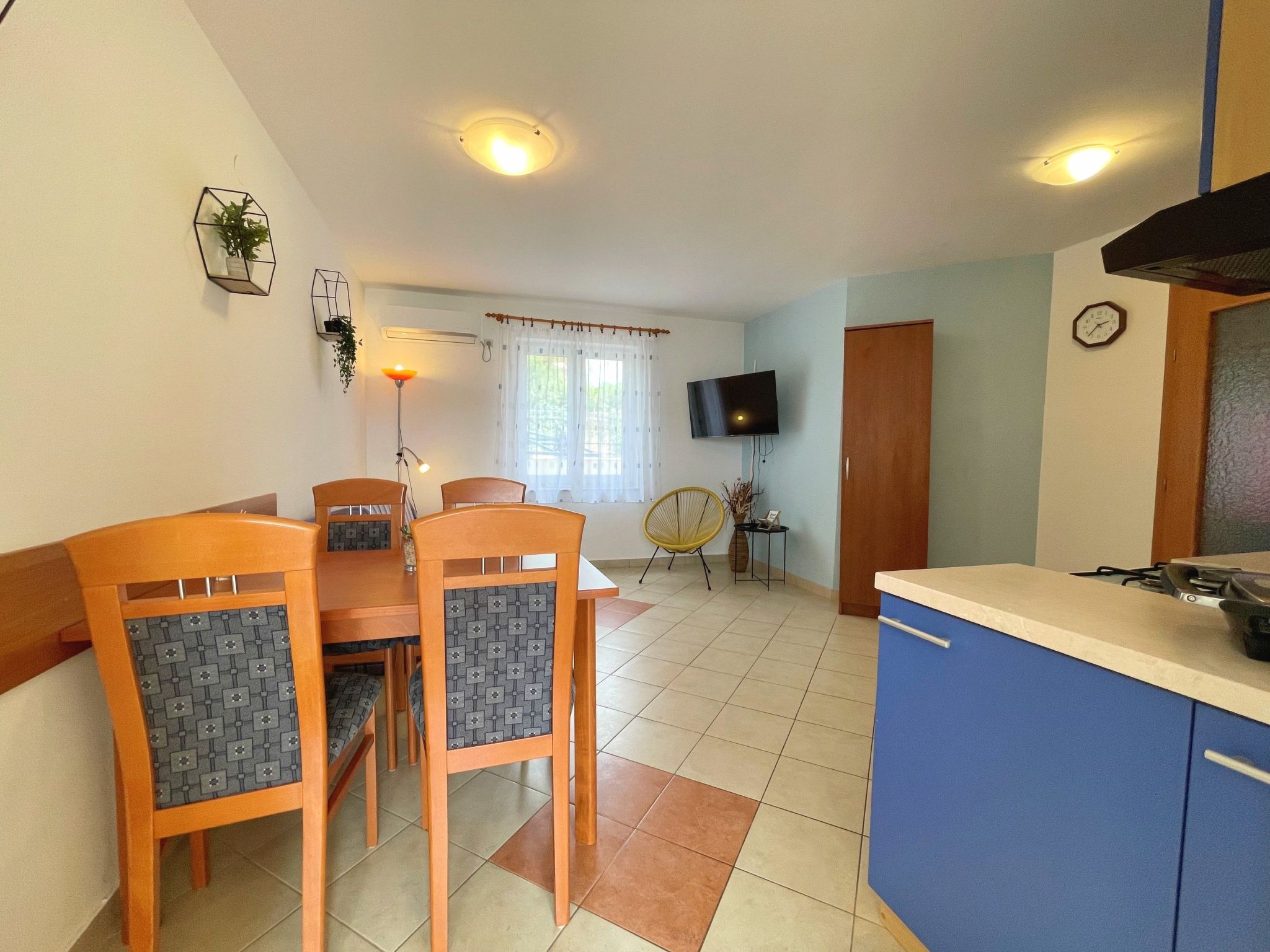 This cosy one-bedroom flat is located just 10 metres from the beach and offers a private balcony (6 m2) with views of the sea, the beach and the town. Guests have access to a barbecue, free Wi-Fi, a private car park and a shared outdoor shower. Air conditioning is available for an extra charge. The bedroom has a comfortable double bed and the living area has a sofa bed for an extra person. The open-plan kitchen, dining and living area includes an electric/gas hob (4 hotplates), fridge with freezer compartment, oven, microwave, coffee machine, kettle and toaster. The living area also has a pull-out sofa, satellite TV and direct access to the covered balcony. All windows are fitted with mosquito nets for added comfort. A baby cot or high chair is available on request prior to arrival (subject to availability).