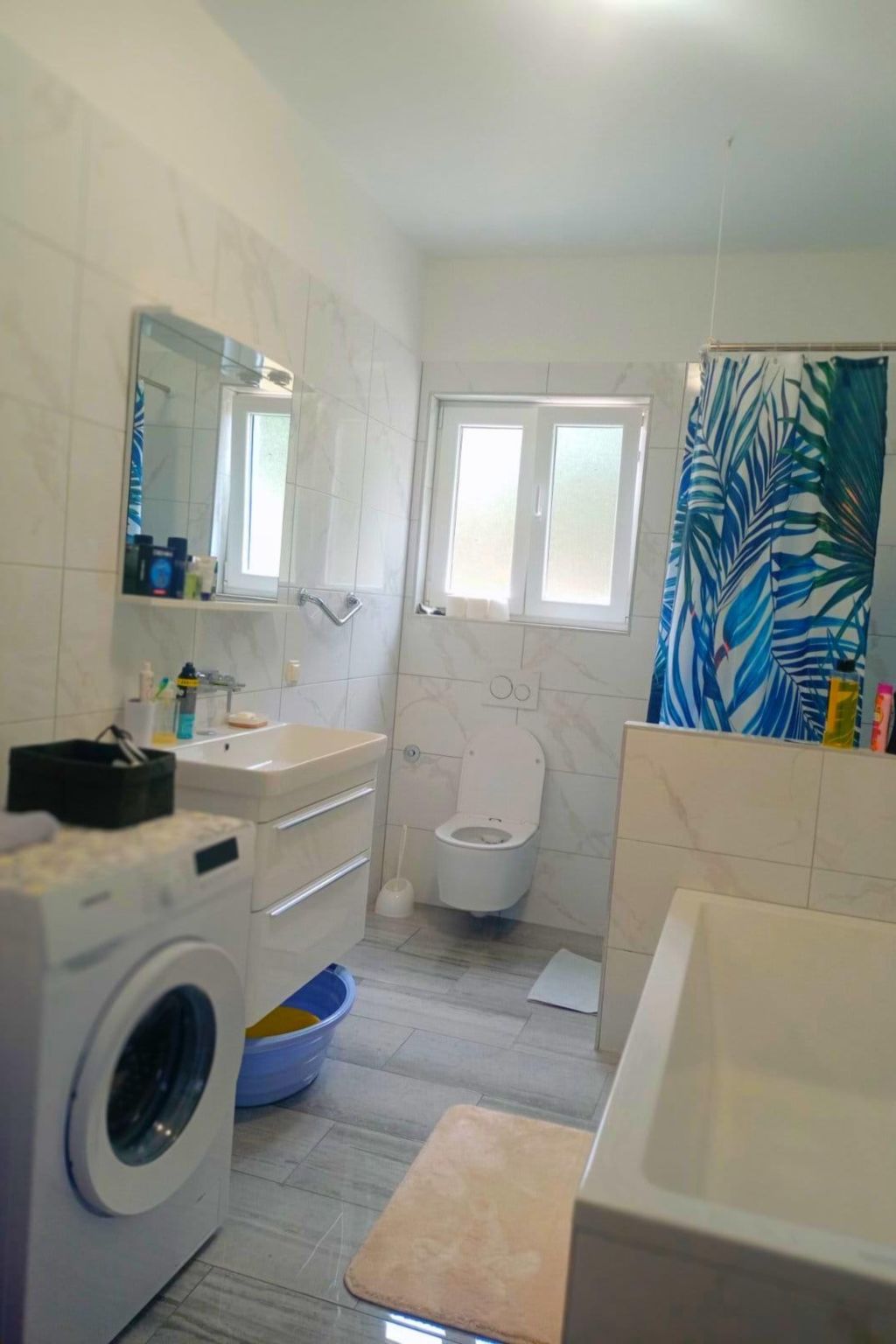 De charme van het strand aan de muren van de middeleeuwse stad is uniek! De trap af gaan. Liever niet voor kleine kinderen. Vind je vakantiehuis Rab.