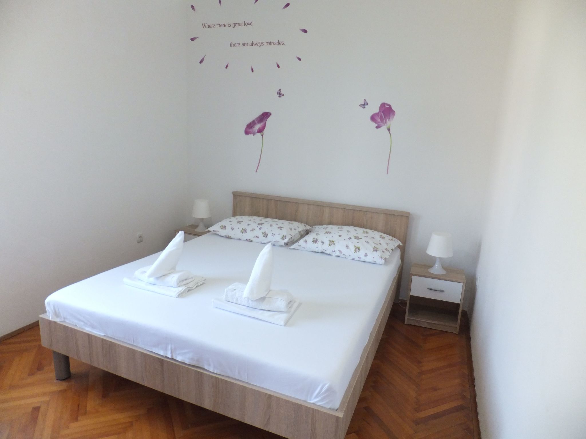 Immerse yourself in the serene beauty of our tranquil holiday home nestled amidst the lush Mediterranean landscape on Rab Island. Surrounded by greenery, vibrant flowers, and the historical charm of the only preserved mill on the island, our property promises a unique retreat where tradition meets nature. The nearby beach, a flowing stream, and the picturesque setting with islands in the distance ensure your stay is filled with picturesque moments of relaxation and joy, making every second of your getaway unforgettable.Our 42 m² apartment, located on the upper floor of a two-story building, is designed to provide you with all the comforts of home in a light-filled and airy space. The open-plan living and dining area, featuring large glass doors, invites the outside in, opening up to your private balcony – the perfect spot to unwind with a glass of exquisite Croatian wine while soaking up panoramic sea views. The living space comes complete with a cozy sofa, satellite TV, and dining facilities, while the kitchen is fully equipped with modern appliances including a two-zone electric hob, a refrigerator with a freezer compartment, a kettle, and comprehensive crockery and cutlery sets. The bedroom, furnished with a comfortable double bed and ample storage, alongside a convertible sofa in the living room and a well-appointed daylight bathroom, ensures your stay is restful.Outside, the private balcony emerges as your personal oasis of calm. Set against the backdrop of the wide bay and the deep blue sea, it's furnished with a table and chairs, making it an idyllic setting for breakfasts bathed in sunshine or romantic evenings under the stars. The surrounding area of our apartment serves as a gentle reminder of the unspoiled beauty nature offers, encouraging guests to relax and reconnect in an environment where peace is paramount.Our location in Supetarska Draga on Rab Island positions you perfectly to explore the enchanting surroundings. Just 700 meters away, you'll find the closest restaurant and supermarket, ensuring convenience is at your doorstep. With Baška 19 km away, Novalja 31 km, and Crikvenica 41 km from the property, adventurous guests can easily venture out to experience the local culture, cuisine, and natural beauty the region boasts. Plus, with Rijeka Airport only 47 km away, access to our tranquil retreat is straightforward for those traveling from afar.Choose our holiday apartment for your next getaway and experience the perfect blend of natural beauty, comfort, and convenience. Whether you're longing for days spent by the sea, explorations of historic sites, or simply moments of peace away from the hustle and bustle of daily life, our idyllic setting on Rab Island promises a memorable and rejuvenating holiday experience.